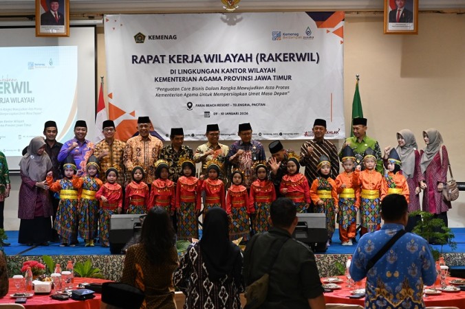 Pacitan (Humas) — Kantor Wilayah Kementerian Agama Provinsi Jawa Timur menyelenggarakan Rapat Kerja Wilayah (Rakerwil) Tahun Anggaran 2026 yang diikuti oleh Kepala Kantor Kementerian Agama Kabupaten/Kota beserta Kepala Subbagian Tata Usaha se-Jawa Timur. Kegiatan ini berlangsung selama dua hari, Jumat–Sabtu, 9–10 Januari 2026, bertempat di Parai Beach Resort – Telengria, Kabupaten Pacitan.