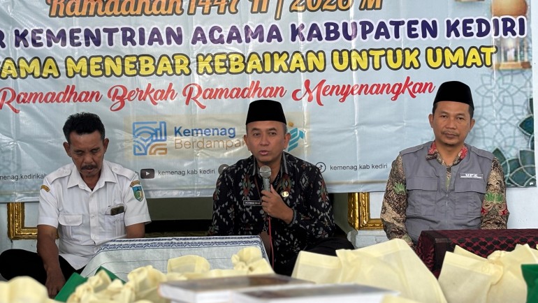 Kediri (Inmas) — Kantor Kementerian Agama Kabupaten Kediri bersama Unit Pengumpul Zakat (UPZ) Kantor Kemenag Kabupaten Kediri dan BAZNAS Kabupaten Kediri menyalurkan bantuan sosial kepada masyarakat dan lembaga keagamaan pada Rabu, 25 Februari 2026. Kegiatan berlangsung di Masjid Baitus Syifa, Dusun Brenjuk, Desa Jambean, Kecamatan Kras, dengan dihadiri perangkat desa, takmir masjid, serta masyarakat setempat.